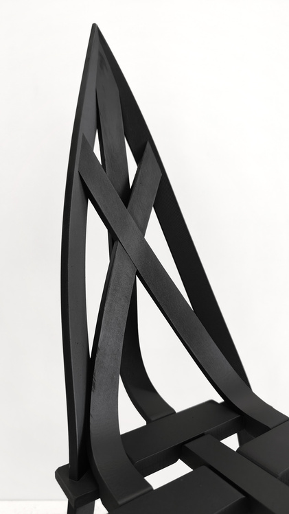 在另一件設計作品《AIX椅》中,設計的側重是在表達我的個人審美以及設計風格。這把椅子尖銳,線條簡潔,而且結構并不復雜,只由幾種簡單的零件組成。同時這把椅子也包含了我對現代椅子及中西設計的理解。